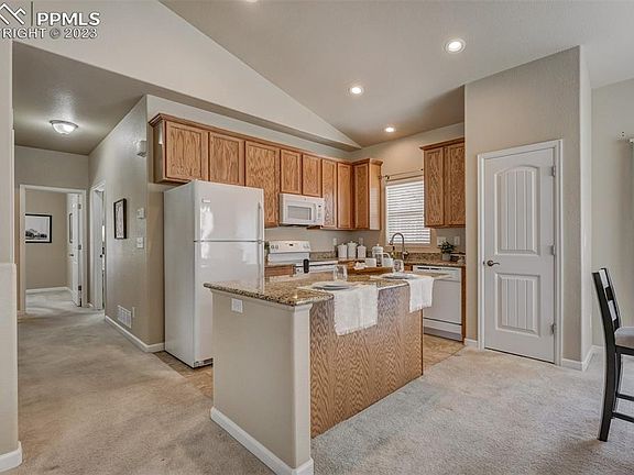 You're going to love this 3 bedroom, 3 bathroom Ranch home with full Basement! This well-built home (2x6 construction) was built by a custom home builder, is in a cul-de-sac. The kitchen has granite counters, a large serving island, separate pantry & 42' oak cabinetry. The dining room walks out to the rear, fenced xeriscaped yard and concrete patio. Back inside the home, the Master has a walk-in custom closet & ensuite with tub/shower combo. There is a second full bath & second bedroom - perfect for kids or home office. The laundry room is right off the garage and washer/dryer are included. Speaking of the 2+ car garage, there is plenty of space for storage and parking! Head downstairs to find 9 ft ceilings in the basement. There is a large bedroom with walk-in closet plus an additional 8x8 room that has been custom made a storage space or change it to suit your needs! You have lots of options for the basement - with the 3rd full bath & rec room, it's a great guest area, kid/teen "apartment" or mother-in-law suite. It's easy to entertain here (& there is definitely room for a pool table)! Enjoy the A/C during the summer too! The HOA takes care of the front yard, snow & trash service. Being part of the Metro District means 2 rec centers with pools & gym! 10 min to Powers Corridor - and all shopping/dining options! Welcome Home!