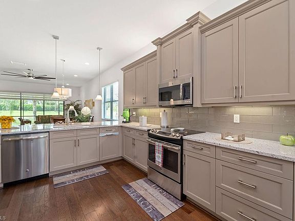 PLEASE VIEW 3D MATTERPORT TOUR...ABSOLUTELY GORGEOUS LUCIA FLOOR PLAN SINGLE FAMILY HOME. Why way to build when this luxurious like new home awaits you! SAVE ALL THE NEW CONSTRUCTION CLOSING COSTS! It features a HUGE GREAT ROOM-DINING-KITCHEN OPEN CONCEPT with SOARING CEILINGS WITH RECESSED LIGHTING GALORE, FLUSH COUNTERTOP BREAKFAST BAR and UPGRADES that impress even the most discerning buyers! BEAUTIFUL PRIVATE SPARKLING LAKE VIEW WITH SOUTHERN EXPOSURE! WHOLE HOUSE HAS IMPACT GLASS, STUNNING KITCHEN features Quartz countertops, rich wood 42 inch cabinets, tile backsplash, stainless steel appliances and modern fixtures. The breakfast nook has a fabulous bay window that gives this home so much character. CUSTOM WINDOW COVERINGS WITH SPECTACULAR ELECTRIC SHADES OVER THE SLIDERS!! DEN COULD BE CONVERTED TO 3RD BR...Marina Bay's clubhouse offers a fully-equipped fitness center, aerobics studio, indoor sports court, social hall, catering kitchen, game room, card room and outdoor amenities include a resort-style pool, lap pool, tennis, pickle-ball, and party pavilion. DON'T MISS IT...EASY TO SHOW