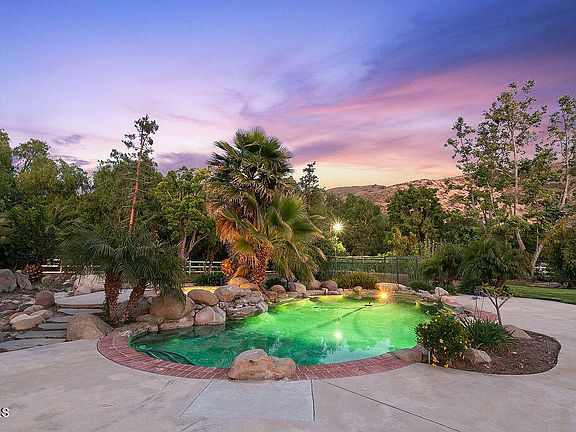 A Masterpiece of California Ranch Living in Santa Rosa ValleyEmbodying the romance and drama of an exquisite California Ranch estate, this remarkable single-story home spans over 3,800 square feet and is nestled on more than an acre in the exclusive gated community of Wildwood Ranch in the Santa Rosa Valley.With distinguished architectural design and timeless craftsmanship, this estate showcases gleaming hardwood floors, soaring open-beam ceilings, and custom woodwork throughout. The remodeled gourmet kitchen is a chef's dream, featuring a large center island, stainless steel appliances, granite countertops, and elegant cabinetry.The home offers four bedrooms, one of which is currently converted into a sophisticated office with custom doors. Two of the secondary bedrooms enjoy en-suite baths, while the expansive primary suite provides a private retreat with its own fireplace, sitting area, walk-in closet, and a spa-inspired bathroom complete with a large shower, exquisite cabinetry, and luxurious finishes.Warmth and character define the living spaces, with three beautiful brick fireplaces located in the family room, living room, and primary suite. The spacious family room also includes custom built-ins and a large brick fireplace, making it an ideal gathering place.Step outside to enjoy the resort-style backyard, featuring a sparkling swimming pool and spa, lush landscaping, meandering walkways, vibrant gardens, and a raised garden bed area. This seamless blend of indoor and outdoor living invites both relaxation and entertaining.Additional highlights include:Oversized 3-car garageExpansive parking court accommodating multiple vehiclesPotential RV access with a 50-amp electrical outletExpanded storage space accessible from the rear yardThis is truly one of the most distinctive and enchanting properties to grace the Santa Rosa Valley--a rare opportunity to own a timeless estate that exudes elegance, comfort, and California living at its finest.