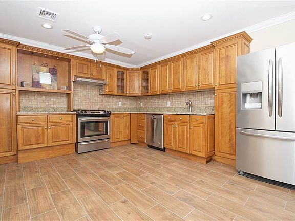 Built in 1988, large two family home with bonus space on first level. First level is a bonus space with living room dining room, sitting area and full bath. 2nd & 3rd floor features open concept living room, dining room, kitchen, master bedroom with private bathroom, two additional bedrooms with bathroom. Bathrooms and kitchens are updated. New hardwood floors, new granite in kitchens and all new stainless steel appliances. Nice living space outside. Each apartment has private balcony with NYC view. 2 car attached garage.