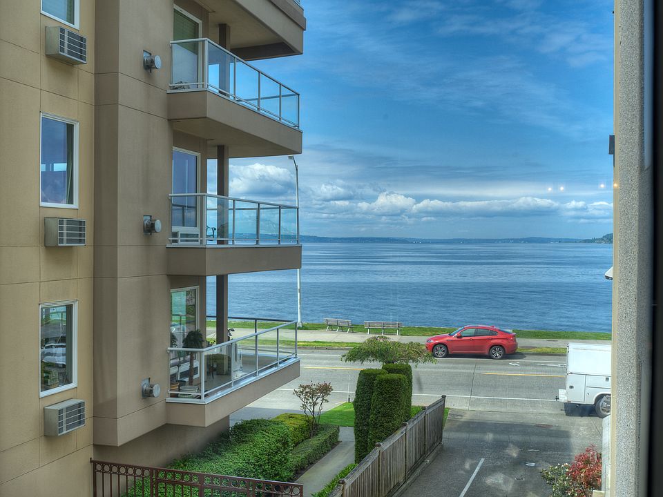 This spacious and nicely updated condo looks out to Alki Beach with its spectacular waterfront, trails and parks. Comfortable and well appointed, you will love the location. Set back from the street with views of Puget Sound and landscaped common area behind. Numerous updates include new hot water tank, upgraded electrical panel and new flooring throughout. Great flow between the spaces and good separation between living and sleeping areas.