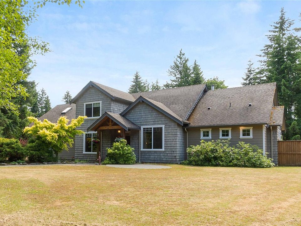 This beautifully built 3,038 sq ft, 3 bed, 4 bath home sitting on a level 2 acres (aprox.) will captivate you with it's exquisite details; timber framed entry, engineered hardwood flooring, elegant coffered ceiling in the dining room, quartz counters & stainless steel appliances. The living room boasts 11-foot ceilings, stylish wainscoting, wood stove insert, & expansive southern exposure windows providing lots of natural light. The primary bedroom includes a luxurious ensuite & spacious walk-in closet. This home also provides a large den & a bonus room; perfect for extra bedrooms, home office, hobbies or play room for the kids! Enjoy outdoor living on the covered patio & unwind in the hot tub. Looking for adventure? Refresh the trail to the river to go fishing or a swim! Cross the river to access your own private 15 acres: explore & hike for hours. Located just minutes from down town Qualicum Beach!