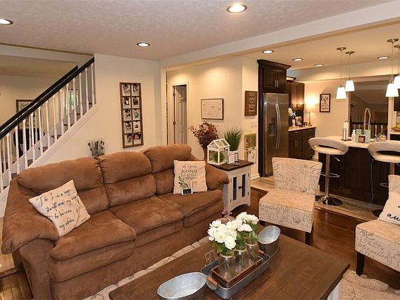 Traditional charm with today's standards! This delightful home comes move-in ready with modern touches, hardwood floors, neutral colors, and classic style to create a clean and inviting atmosphere throughout. Rich hardwoods greet you at the front door, leading you into the spacious formal dining room and living room. The kitchen showcases stainless steel appliances, a center island, stainless steel backsplash, solid wood cabinetry, and wood-look tile flooring. Off the kitchen is a flex space with garage access, great for a family room, play area, or office. The master suite addition is truly stunning with a cathedral ceiling, a walk-in closet with built-ins, sliders leading outside to a private patio, as well as a master bathroom with double vanities and a marble walk-in double shower. A full bathroom with more gorgeous finishes completes the first floor. Two bedrooms with hardwood floors and a full bathroom can be found upstairs. The lower level offers a laundry closet, a recreation room featuring a bar and a granite countertop, and an unfinished area with plenty of space for storage. Beautifully situated on nearly 2 acres, this home is close to everything Chagrin Falls has to offer including restaurants, shopping, and access to Chagrin Falls schools!
