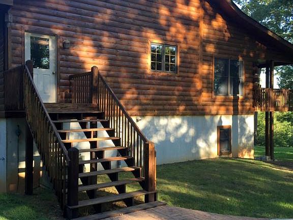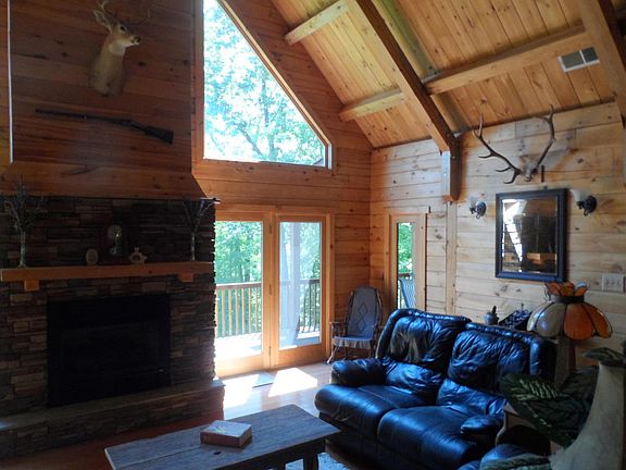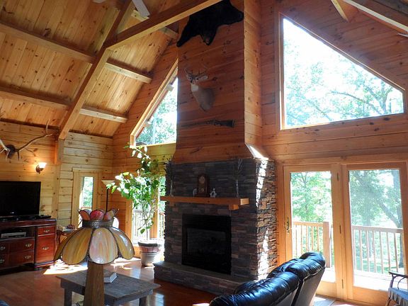 Owner/agent. Buy cheaper than you can build. Custom built log home (not siding) with mostly log interior for the true log home lover. Stone fireplace, large decks facing lake, 22 ft vaulted ceilings, 4 wheeler path, open concept great room, office, loft, two bunkrooms, 3 bedrooms and a massive master suite await you. Antiqued wood ceilings in the basement, two Jacuzzi bath tubs, glass enclosed walk in oversized master tiled shower, custom kitchen cabinets, many antique pieces for vanities, antique bronze fixtures throughout, hardwood floors thru home (cork floors in kitchen), polished stained concrete floors in basement, two hot water heaters, dual zone hvac, large walk in pantry, Anderson windows, special drainage under home, full I beam construction.