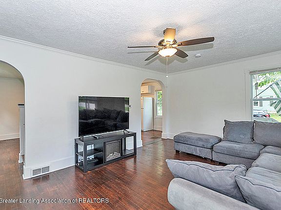 Welcome home to this conveniently located property. The property offers many updates and is situated on a large lot. Updates include; windows, kitchen, bathrooms, freshly painted interior and a partially finished basement with a multi purpose room/ 4th bedroom. The open kitchen and dining room are great for entertaining. Nice size living room. A newer kitchen with white cabinetry, tile backsplash, laminate countertops that look like marble. The second floor offers three bedrooms, and hardwood flooring on the first and second floors. The washer and dryer remain with the property. Great location, close to MSU, ELPS, Downtown East Lansing, and public transportation. This property is not in a rental restriction overlay district.