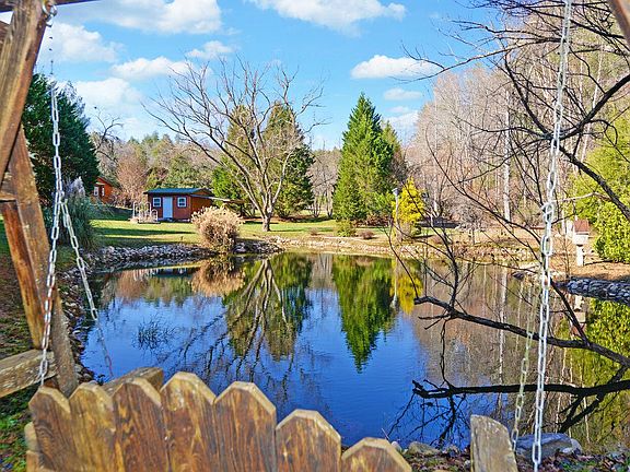 Custom rustic Coopers Creek cabin on a babbling fast-flowing stream.Rocking chair porches/screened porches+deck surround this enchanted,one-of-a-kind cottage nestled in the heart of the Chattahoochee National Forest on an unrestricted 1.2 acre tract.Upon entering the great room,you will see the soaring pine ceilings and interior,stone fireplace,and open-flowing floorplan with a well-designed kitchen.Warm,pine floors lead you to 1bed,1bath+washer/dryer for main level living.Custom railings along staircase lead to upstairs master suite.Master bath includes jacuzzi tub and tile floors.Enjoy a screened-in porch off the master bedroom which overlooks this secluded,private oasis with spring-fed pond,creek,and spectacular landscaping.Did I mention the detached rustic living quarters which includes 1bed,1bath,kitchenette,and large living area with stone fireplace with gas logs.Carport+detached storage building for all your mountain toys+tools.Automatic whole house propane generator for the main home.Unrestricted with amazing rental potential.Minutes from fly fishing/tubing/kayaking in Coopers Creek or Toccoa River.A short,scenic drive into Blue Ridge or Blairsville for dining+shopping.Your search is over.Step inside+fall in love.