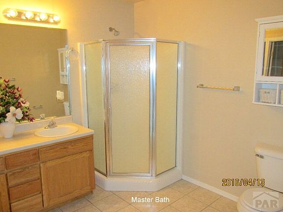 Scrumptious open floor plan with vaulted ceilings.Brand new paint, new carpet, newer stainless steel appliances, new counter top, all tiled floor, very open plan. Gorgeous gas log fireplace with great masonry stone. 4 large bedrooms, 3 baths, and extra deep garage on one side for stuff. Huge laundry room on main floor. Walk in closets ! Great views of both Spanish Peaks and Pikes Peak. Quiet area. This backs up to PMI, no back yard neighbors ever !!!!. Right off 1st exit to Pueblo West.
