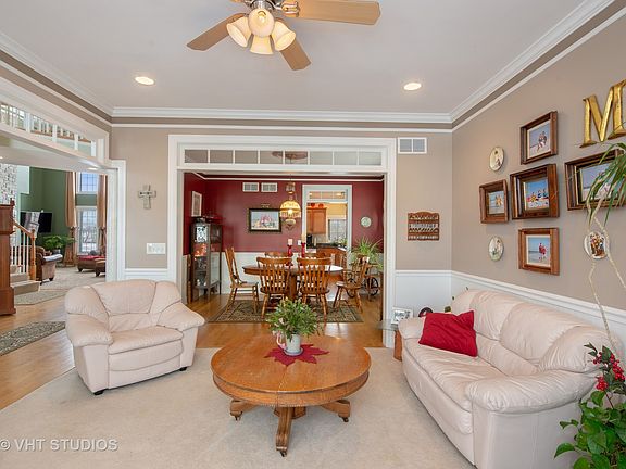 This is an Entertainers Delight! Freshly re-finished hardwood Floors, New Carpet, New Refrigerator & a view of private green space out your backyard like nothing else on the market! This home offers Brick, Stone and Vinyl exterior, a Gourmet Kit w/ Dbl Ovens, Gorgeous Brakur Custom Cabs, SS Appl (refrig 19' & Dishwasher 17'), Large Isl & Counters w/ Stunning Blk Granite. Open Concept Kit/FM shows off the 2 Story Mason FP, Custom Painting decal on ceiling, Custom, Gorgeous, Suede Floor to Ceiling Drapes, Blinds in all windows, White Trim thru out, Transom Interior Windows, Dbl Crown Moldings...Luxurious Master Suite waiting for your touches, freshly painted Jack & Jill BA and 4th Bed complete w/ its own 3/4 Bath. Fin. English Basmt w/ large Rec Area, Lighted Tray Ceilings, Gas FP, Lg Curved Granite Wet Bar & free standing "Dry" Granite Bar..loads of storage, 3 car heated garage, .36ac of fenced in beauty! Over 25 Arborvitaes for your privacy! This is the dream house you always wanted!