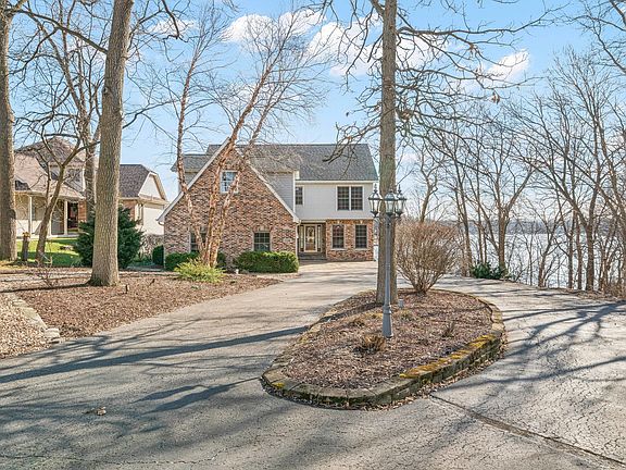 1156 Lady Bird Drive is the creme de la creme of lakefront homes located in desirable Lake Holiday! Not only will this home take your breath away with truly one of the best views from a home on the lake, but it will check all your boxes of wish list items in a home and then some! The brick paver driveway approach welcomes you in the front door where you are quickly greeted with the open and airy main floor w/ a glimpse of the stunning water view ahead! Let's begin our tour with the charming library/office off the entry w/ custom built ins, followed by a powder room which is quickly out shined by the 2 story living room show casing a brick fireplace (gas logs!), tons of natural light and lake views pouring in, connected to the expansive dining room w/ more custom built ins ideal for entertaining and a breath taking arched window that highlights the long view of the lake! Step into the spacious kitchen w/ island, newer appliances, desk area, and the holy grail of walk in pantries! Once you picked your jaw off the floor from the incredible pantry, peak inside the attached 3 car garage. Next, let's head upstairs for more surprises. At the top of the stairs you'll find the 1st of 5 true bedrooms, a full guest bath, the 2nd bedroom which also leads the way to the 2nd floor laundry, AND the FROG! 'Finished Room Over the Garage' - haven't you always wanted a FROG?! This could serve as a phenomenal bonus room of any kind. Think bunk room, teen hang out, man cave, etc. The possibilities are endless! Go back through the laundry room, and head into the walk-in master closet that will suit anyone who loves closet storage. But, once you step into the master bedroom - your fate is sealed. 1156 Lady Bird Drive will be your next home! Imagine waking up every morning to that INCREDIBLE lake view, morning coffee on your balcony, and the French door entry. Attached en suite w/ separate tub & shower as well! IF you need more convincing, simply head down to the walk-out basement that boasts 2 more bedrooms w/ egress, the 3rd full bath, the FULL 2nd kitchen, AND a huuuuge enclosed porch drenched in natural light and all you'll see is THAT VIEW! The exterior of 1156 Lady Bird is just as breath taking. A new composite deck and railing system off the main level as well as the master suite balcony, paver patio w/ 2 fire pits off the walk-out level, moderate steps down to the lake level brick patio, and included in the sale is a great 40ft L-shaped pier system. Other note worthy highlights include; new roof (less than 2 years old!), new water softener (3yo), 1 new furnace and 2 new AC's w/in the last 5 years, newer appliances in the main kitchen, newish appliances in the walk-out level kitchen, AND under ALL the carpet in the home are preserved refinished hardwood floors! (Pictures available upon request.) Seller's refinished them all upon moving in, and decided they wanted to cozy things up with carpet. The decision is yours moving forward. Take the next step to "Be On Vacation Every Day of the Year!" w/ 1156 Lady Bird today!