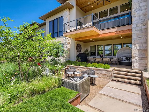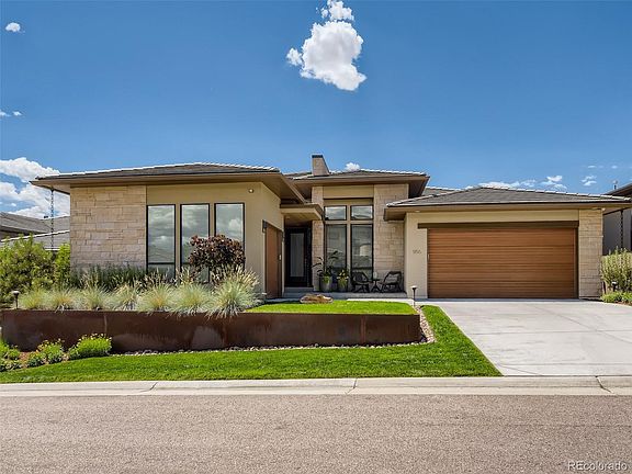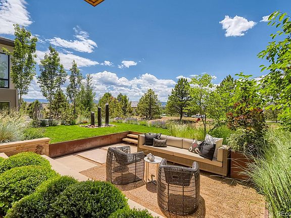 If you want a magazine worthy modern home with incredible mountain views, here’s your new dream home. No expense was spared in this incredible home in Castle Pines Village. Enjoy entertaining and working in the chef worthy kitchen with high end Wolf and Sub-zero appliances. Custom upgraded Cambria counters throughout the house, with beautiful stone counters in the lower level bar. Gorgeous onyx slab in the huge master shower. Every single finish in this home was custom designed including high end lighting, cabinets, window treatments, extensive Phillip Jeffries wall coverings, and a wine wall that rivals many restaurants. Control4 is perfect for your whole house control of lighting, music, television, and security. The garage is finished with storage, floor coating and wiring for electric vehicle charging station. The fundamentals of the home include upgraded insulation throughout, water softener, humidifier, air purifier and more. The extraordinary landscape was designed by a landscape architect and installed by Lifescape Colorado. Open your folding glass doors to enjoy Colorado’s sunshine and amazing views of Mt. Evans and the Rocky mountains. Several water features contribute to the serene and sanctuary like feel of this home. A modern glass enclosed study insures you can enjoy those views as you work from from home as well. This home is exceptional and a rarity in the village with both, views, being almost new and having every beautiful designer finish completed for you before you move in! You must see this one. The neighborhood is also home to 2 of Colorado's best nationally rated private golf course and clubs. Castle Pines is recently celebrating the return of the PGA tour in 2024. Come home and enjoy one of Colorado's most desirable gated communities just outside of Denver.