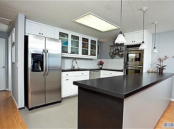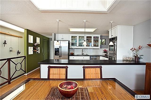 Enjoy beautiful North Coast, Catalina, Green Belt Views from this contemporary beach home. The views are just as fabulous at night with blazing city lights or if you prefer lucid stars overhead...Your beach house comes complete with Wood Burning Fireplaces in the Master & Living Rooms; a slick, open kitchen with double wall ovens, leathered honed granite, oversized deep Vigo kitchen sink, & much more (ocean views while you cook!); hardwood flooring throughout; recessed lighting; landscaped backyard; lots of natural light....there is more....AND French Doors Leading To upper deck; enclosed office space w/ocean view(approx. 150sf, not part of sq.ft listed); Recessed Lighting, Mirrored Wardrobs And Skylights Through Out. Oversized Garage With Storage Room.