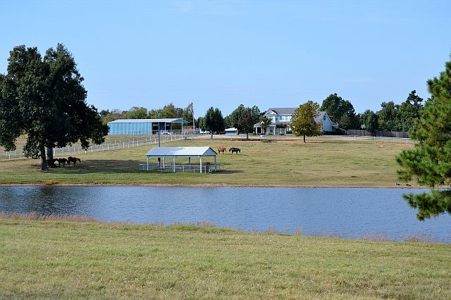 Motivated Seller! Must See Ranch Improvements! Here is your opportunity to own a top notch ranch for all types of equine operations. This ranch provides the improvements to make your work day easier: 3 metal barns (easy to clean out) with cameras monitored from comfort of the home, metal hay barn, 2 metal shop buildings, 8 paddocks with automatic water systems to all paddocks and pastures, large covered exterior work areas, wash racks with hot & cold water, well planned layout of the improvements near the home, lush Bermuda pastures and miles of horse proof fencing. *Mare Motel, 63x33 6 Priefert stalls with sand and automatic waterers, climate controlled with 2 CH&A units, skylights & florescent lighting over each stall, 13 ft wide center breezeway, cameras. Metal construction on cement pad with large awnings creating covered outside work space including all purpose side-by-side chute, hot and cold water every convenience! Plus, large lab and tack room with tongue and groove wood. *Stable, 40x62 6 stalls 13.6x12.6 each with exterior doors that turnout into grass paddocks. Automatic water and sand in all stalls, cement breezeway. Large tack room, and covered wash rack. *Newer metal foaling barn, 18x18. Insulated, electric, lights and camera. *Horse Walker with reverse and quick release. Set on sturdy base. *2 metal workshop/equipment buildings, both on concrete pads with extended awnings for covered outside work areas. 2 oversize roll-up doors, electric and lights. One building has efficiency room with shower and toilet -- This area once used as a kennel. --Workshop one: 40x60, 3 oversized roll-up doors --Workshop two: 30x50, 2 oversized roll-up doors *Hay barn, 30x50. 3-sided for easy access and storage, water. *Riding Arena with return, 120x200. Lighted and adjacent to stable. *Miles of pipe and horse proof fencing. *8 grass paddocks and 3 Bermuda grass pastures. Automatic water systems to all stalls . This Victorian Showplace features appx. 3000 sq ft of living space and built in 1990. 2 master bedrooms downstairs, 3 bedrooms upstairs, open concept with private areas, 3 living areas, 2.5 baths, formal dining open to front living room, kitchen and snack bar open to breakfast nook. Den with beautiful fireplace open to breakfast nook and kitchen. Florida room would make a great game room off large covered back patio and saltwater pool in fenced backyard. Unique office with tongue and groove wood, built-in bookcases, vaulted ceiling and sealed pebble flooring ready for work or showplace for awards! French door leads into master suite. Loft overlooks den and breakfast nook. Large pantry, stainless appliances including refrigerator and tiled counter tops for plenty of work space. CH&A, plus 2 radiant propane heaters. Home interior was recently painted with neutral colors, and new carpet compliment the tile and hardwood floors. Vaulted ceilings create unique architectural lines throughout home. Beautiful country views from every window! From back patio, you can keep your eye on the horses and hear whenever there is a ruckus in the barn! Current owners park vehicles in the shop building closest to the house, and theres still room for hay, trailers, etc. -- It is really big! Two large propane tanks stay with the property. Huge stocked fishing pond, long dock, picnic pavilion with built-in grill, and often a flock of geese -- beautiful! Towards the back of the 40 acres, there is a beautiful stand of pine trees, plus scattered trees throughout property for great shade for horses & cattle. 3 pastures and 8 paddocks with Bermuda The gently rolling land and beautiful views, along with the custom home and tons of improvements make this Ranch a one-of-a-kind that is hard to find. To take a good look at this Ranch, give Karen Lee a call or text today at 580.465.3015. --P.S. Grant Rural Water serves this property, and Sellers say it tastes great. Help yourself to a cold glass of water or two when you take the tour!
