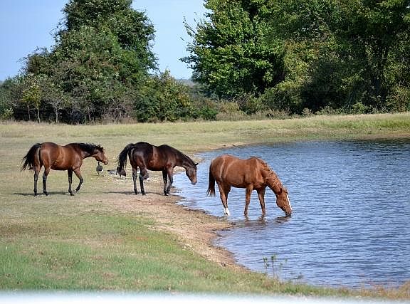 HORSE RANCH ON 40 ACRES NEAR OK & TX BORDER! Home to Kurz Racing - take advantage of raising Oklahoma bred and born winners! This ranch provides the improvements to make your work day easier: 3 metal barns (easy to clean out) with cameras monitored from comfort of the home, metal hay barn, 2 metal shop buildings, 8 paddocks with automatic water systems to all paddocks and pastures, large covered exterior work areas, wash racks with hot & cold water, Bermuda pastures and miles of horse proof fencing. *Mare Motel, 63x33 6 Priefert stalls with sand and automatic waterers, climate controlled with 2 CH&A units, skylights & florescent lighting over each stall, 13 ft wide center breezeway, cameras. Metal construction on cement pad with large awnings creating covered outside work space including all purpose side-by-side chute, hot and cold water, Large lab and tack room with tongue and groove wood. *Stable, 40x62 6 stalls 13.6x12.6 each with exterior doors that turnout into grass paddocks. Automatic water and sand in all stalls, cement breezeway. Large tack room, and covered wash rack. *Newer metal foaling barn, 18x18. Insulated, electric, lights and camera. *Horse Walker, *2 metal workshop/equipment buildings, both on concrete pads with extended awnings for covered outside work areas. 2 oversize roll-up doors, electric and lights. One building has efficiency room with shower and toilet -- This area once used as a kennel. --Workshop one: 40x60, 3 oversized roll-up doors, --Workshop two: 30x50, 2 oversized roll-up doors, *Hay barn, 30x50. 3-sided for easy access and storage, water. *Riding Arena with return, 120x200. Lighted and adjacent to stable. *Miles of pipe and horse proof fencing. *8 grass paddocks and 3 Bermuda grass pastures. Automatic water systems to all paddocks and pastures. Newest paddock by riding arena has return. Custom Home: This Victorian Showplace features appx. 3000 sq ft of living space and was built in 1990. 2 master bedrooms downstairs, 3 bedrooms upstairs, open concept with private areas, 3 living areas, 2.5 baths, formal dining open to front living room, kitchen and snack bar open to breakfast nook. Den with beautiful fireplace open to breakfast nook and kitchen. Florida room at back of home would make a great game room. It leads to large covered back patio and saltwater pool in fenced backyard. Unique office with tongue and groove wood, built-in bookcases, vaulted ceiling and sealed pebble flooring ready for work or showplace for awards! French door leads into master suite. Loft overlooks den and breakfast nook. The kitchen is ready for the next chef or homestyle cook or even those of us who are culinarily challenged! Great layout makes cooking a joy or at least easy! Large pantry, stainless appliances including refrigerator and tiled counter tops for plenty of work space. CH&A, plus 2 radiant propane heaters. Beautiful country views from every window! Two large propane tanks stay with the property. The Grounds: pipe entrance with automatic gate. Off to the right of the winding drive, you will see a huge stocked fishing pond, long dock, picnic pavilion with built-in grill. Towards the back of the 40 acres, there is a beautiful stand of pine trees, scattered trees throughout property for great shade for horses & cattle. 3 pastures and 8 paddocks with Bermuda. I have been told the horses even take the side lane from the front pasture and put themselves in the barn! Give Karen Lee a call or text today at 580.465.3015