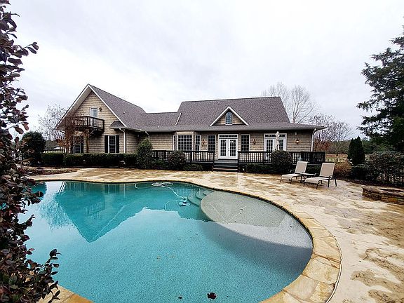Buyers agents welcome. Absolutely stunning 4 bed 3 1/2 bath house with a designer salt water pool and fire pit perfect for entertaining on 2.54 acres in Ringgold. This immaculate house has new hardwood flooring, brick laundry room flooring, painted kitchen cabinets, quartz countertop and the whole house has a fresh coat of soft white paint. The master is on the main level with two bedrooms upstairs with a full bath. Both bedrooms have a walk in storage area in them with additional storage in the dormers. There is also a separate HUGE bedroom above the garage with its own staircase entrance and full bath. Great for an older child, parent or guests that need privacy. This room also includes a balcony overlooking the landscaped pool and back yard. Too many features to mention. Call for an appointment.