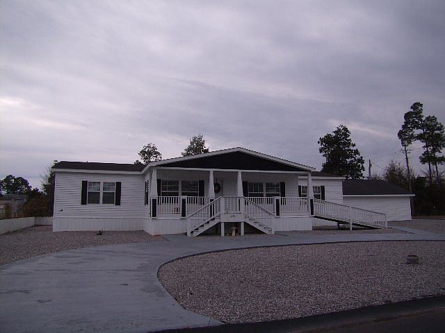 Fleetwood triplewide on huge lot with a 25x27 garage has entire wall of closet storage plus attic space. Full house ventilation system. Front & rear covered porches, handicap ramps. Rock filled yard is virtually no maintenance, side and rear fencing. Master BR has retreat/office area and huge WIC. Large master bath has garden tub, separate shower, his & her vanities. Some furnishings negotiable. Brokered And Advertised By: Avast Realty Orange Beach Listing Agent: Judy Green
