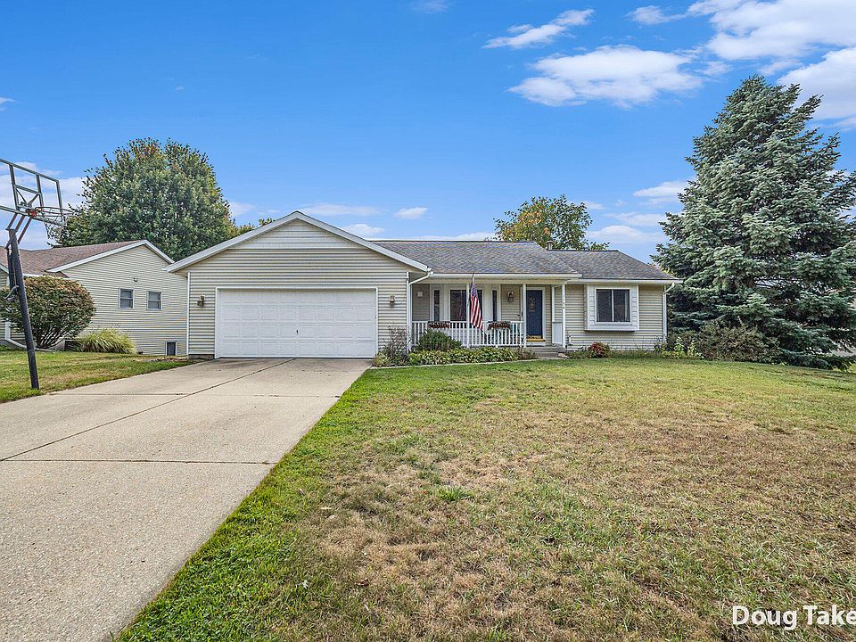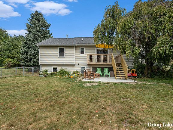 Welcome to a new ranch listing in the highly desired and Award winning Byron Center Public Schools. The main floor has a kitchen with granite countertops, white cupboards and updated pantry, eating area, living room, 2 bedrooms and a full bath. The lower level has a large family room, office spot, full bath, bedroom, laundry and storage. Other perks: New shed, poured concrete patio, deck stairs, and interior paint, fenced backyard, fiber internet, and close to schools, parks, trails, restaurants, shopping and major highways. Open house is 4 to 5 30 on 10.5.24 and offers due on at 7 pm on 10.7. Call for a private showing today.
