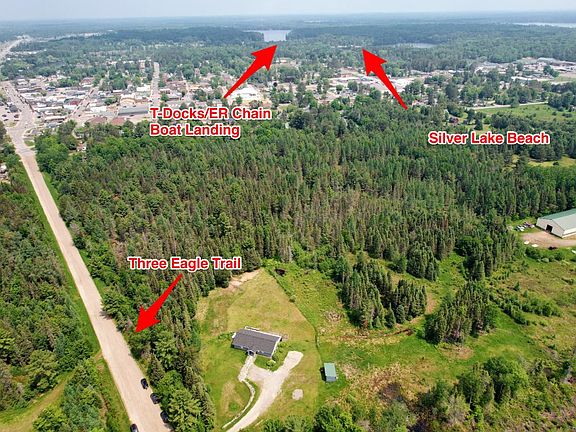Private and updated home on 4 private acres within walking distance of Eagle River! There is an approved permit for a new garage on file with the county. As for the house, enjoy the over 1,500sqft of main level living, vaulting great room ceilings and true master suite. The doorway off the dining area takes you to your open backyard deck where you can watch the kids, pets or whomever play in the mostly fenced-in yard. The end of your driveway gives you direct access to the Three Eagle Trail which runs over 12 miles between Three Lakes and Eagle River and offers biking, hiking, or cross country skiing! The property also has easy access to the snowmobile trails and ATV/UTV trails. A 5 minute drive away is the Silver Lake public beach, or the Eagle River Chain T-Dock boat landing! With All-Purpose zoning, the property has short or long term rental potential. This is the perfect quiet spot to enjoy all the perks Eagle River and the Northwoods has to offer!