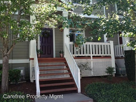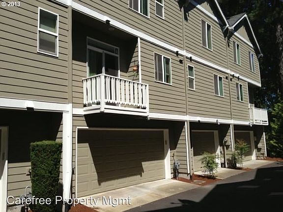 Double Master Suites! Walk to Nike Campus! - Excellent location and layout. Move in ready. Very cozy and modern townhouse with double car garage on lower level. Main level features gleaming pergo floors in the living room, dining room and kitchen. Gas fireplace. Two balconies. Custom wood blinds. Stainless appliances. 1/2 bath. Third level has new modern paint. Double master bedrooms and walk in closets. Full size washer/dryer conveniently located next to bedrooms. Light and bright! Walk to Nike Campus! A/C. Trash included. Tenant pays gas, electric and water/sewer. HOA covers landscaping. Sorry no pets. Please drive by first then call Kris 503-427-8173 for a showing. No Pets Allowed (RLNE4040156)