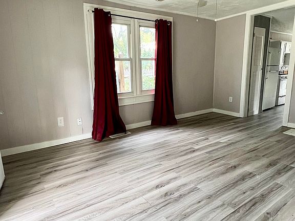 Newly remodeled 1 bedroom, 1 full bath ranch with many updates. Beautiful new laminate wood flooring & fresh neutral paint throughout. Updated kitchen boasts solid wood white cabinets, new tile backsplash, pantry, refrigerator and gas range included. Laundry is conveniently located in the kitchen with overhead shelving for additional storage, washer and dryer included. Living room is spacious with ceiling fan and extra area, great for dining area. Bedroom is spacious with ceiling fan and 2 closets. Full bath features bathtub/shower with custom tile surround, ceramic floors, wood vanity, updated toilet and natural light. Replacement windows throughout, HVAC 2018 and water heater 2020. Check out this cozy, low maintenance and move in ready home!