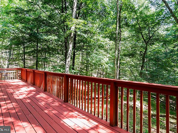 Whispers of the Woods – A Serene A-Frame Hideaway Tucked at the end of a quiet cul-de-sac on nearly 3 wooded acres, this enchanting A-frame cottage is the retreat you didn’t know you needed—but won’t want to live without. Set beneath a cathedral canopy of trees in The Woods community, the home is embraced by nature on all sides, offering ultimate privacy, peaceful forest views, and even the soothing sound of a babbling brook meandering at the property’s edge. Step inside and exhale—the light-filled interior welcomes you with soaring ceilings, an open-concept layout, and a dramatic wall of windows in the great room that brings the outside in. Watch the sun filter through the treetops as you sip coffee from the inviting sunroom, or slide open the glass doors and gather on the expansive 38x8 deck—perfect for sharing laughter, stories, and starlit evenings with loved ones. This cozy cottage features two comfortable bedrooms and one stylishly updated full bath. The kitchen is a dream with updated cabinets, new stainless steel appliances, granite countertops, and recessed lighting that adds warmth and polish to the space. Offered with a Class B membership (optional, with a $3,150 initiation fee), you’ll have access to all the recreational amenities The Woods has to offer. And for an easy move-in, some furnishings convey—just bring your weekend bag and a bottle of wine. If you’re longing for a place where time slows down, where privacy is plentiful, and nature sings you to sleep—look no further. Your peaceful escape is waiting.