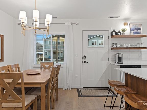 Prime investment property in ideal location near downtown and BSU. Beautifully designed 3 bedroom, 2.5 bath townhome with a stunning open kitchen with center island and white quartz countertops and white subway tile backsplash. High end Whirlpool s/s appliances, and stylish grey wood-grain cabinetry. The living room opens to a charming wast facing patio and small yard, ideal for outdoor relaxation. Luxury vinyl plank flooring throughout the living spaces, with carpeting in bedrooms and upstairs hallway. Three bedrooms located on the upper level, including a primary suite thoughtfully separated from the others. Two upstairs bathrooms boast double vanities. Community amenities such as a bocce ball court, gazebo, and picnic area with tables and chairs, and dog area! Detached 2 car garage is an added bonus!