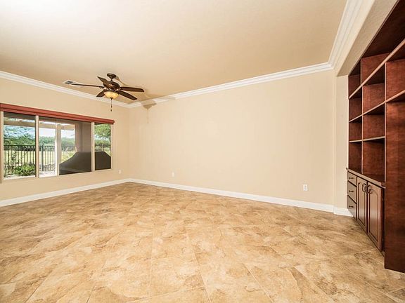 Golf Course Iris Model which has been the most popular model since 2007 when the builder opened Sun City. With the courtyard in front facing North, the comfort to enjoy reading or listening to music is perfect. Garage and Courtyard have epoxy coating..View of the Golf Course from backyard extended patio that opens up to the South and the lake to the West. Ceiling fans in every room, 18" tile throughout house except bedrooms where there is upgraded carpet. Crown Moulding and two tone custom paint throughout. All appliances are included. pgraded kitchen cabinets with pullout drawers as well as an additional pantry cabinet. A must needed feature is the tandem garage for extra space to store your golf cart or toys. The Garage has a ton of shelving as well as an Air Conditioner and insulated door. The SID is PAID IN FULL. The window coverings vary, with shutters in the bedrooms, shillouettes in the Great Room with remote. This is a must see, and ready for move in now,