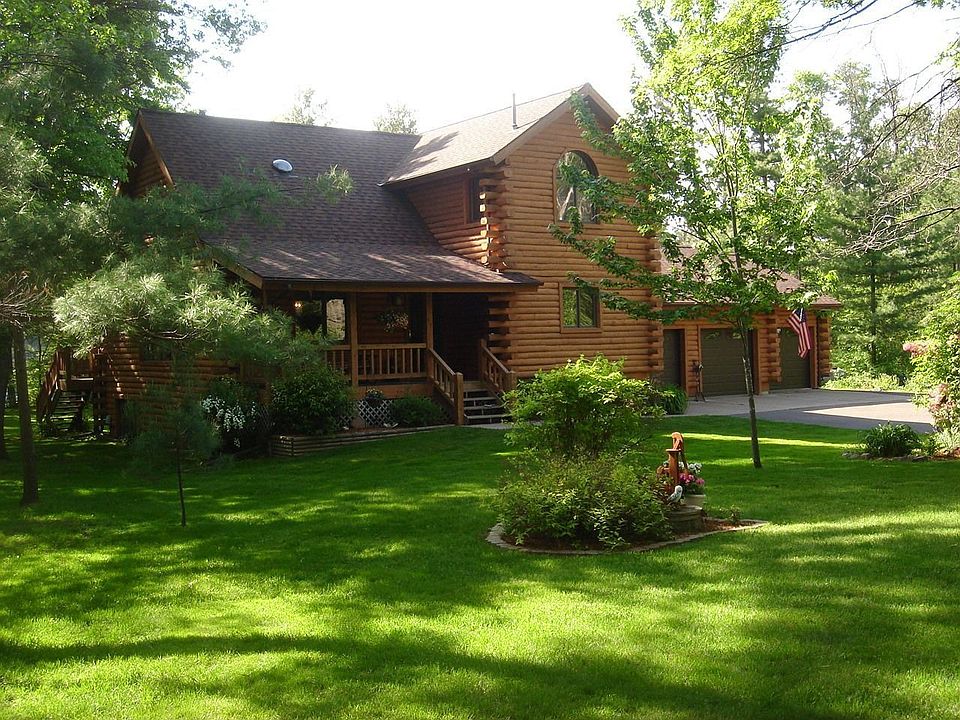 Very secluded rustic log home (1/2 log siding) with open concept featuring upscale country living on over an acre of river frontage. Look over your natural & professional landscaping from the large front porch. Home has custom made doors, maple floors, vaulted ceilings, cedar beams & siding. Kitchen has custom cabinets & island. The 4 season sun room faces river for a four season view. New furnace & roof in 2007, new garden shed & sprinkler system in 2008
