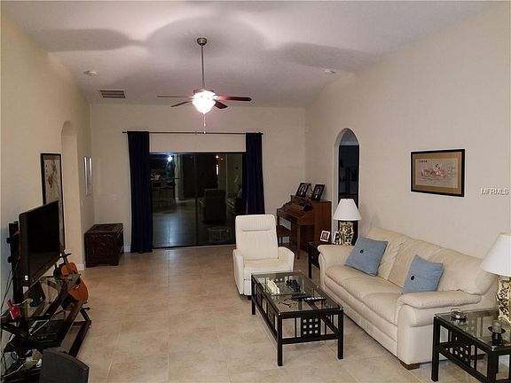 Picture perfect and feels like a new home. 4 bedrooms and 3 full baths on a beautiful pond. This home has all the extras; 42 inch espresso cabinets, quartz countertops, stainless appliances, 20 inch porcelain tiles throughout, vaulted ceilings, whole house water filtration/conditioner system, kitchen reverse osmosis, in wall pest defense, rain gutters, wider pavered driveway. This beautifully designed home offers a perfectly arranged kitchen with a breakfast bar opening to the living room. Sliding doors to the screened lanai, overlook the pond. Watch the ducks, sandhill cranes, and a gorgeous sunset from the lanai. The 3 way split floor plan offers the master bedroom in the rear of the home with a master bath; double vanities, a garden tub and a stall shower. Two bedrooms on the other side of the home share a Jack and Jill bath. The front bedroom, which has a nice large window giving you lots of light, has a bath right next to it. Beautifully landscaped and meticulously maintained. Energy efficient appliances and radiant barrier roof keep electric bills very low. Trinity Preserve is a gated community. Walk to the new Publix shopping plaza and Odessa Elementary. Zoned for Seven Springs Middle and Mitchell High School. Minutes to the Suncoast Parkway and convenient to shopping and restaurants. Low HOA fees and no CDD fees.