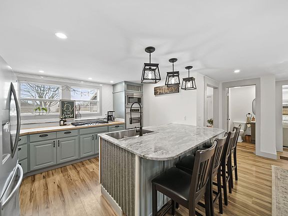 This gorgeous hobby farm features a completely updated home with over 2000 sq ft of living space, combining a country feel with modern amenities. The home offers 3 bedrooms, 2.5 baths, and a large family room with a wet bar and live-edge bar top. New windows flood the home with natural light, and a cozy wood-burning fireplace with a granite hearth adds warmth on cold nights. The open kitchen boasts butcher block and granite countertops, a walk-in pantry, and an appliance package. The master suite includes a double sink, walk-in tiled shower, and walk-in closet. Outside, enjoy a 2-car detached garage, pole barn with insulated workshop, silo, 2 covered porches with Trex decking, a stamped concrete patio with a built-in fire pit, all set on 4.5 acres. Updates include new windows, siding, insulation, master suite, baths, drywall, paint, hardware, light fixtures, flooring, concrete walkways, and updated electric and plumbing. Check it out!