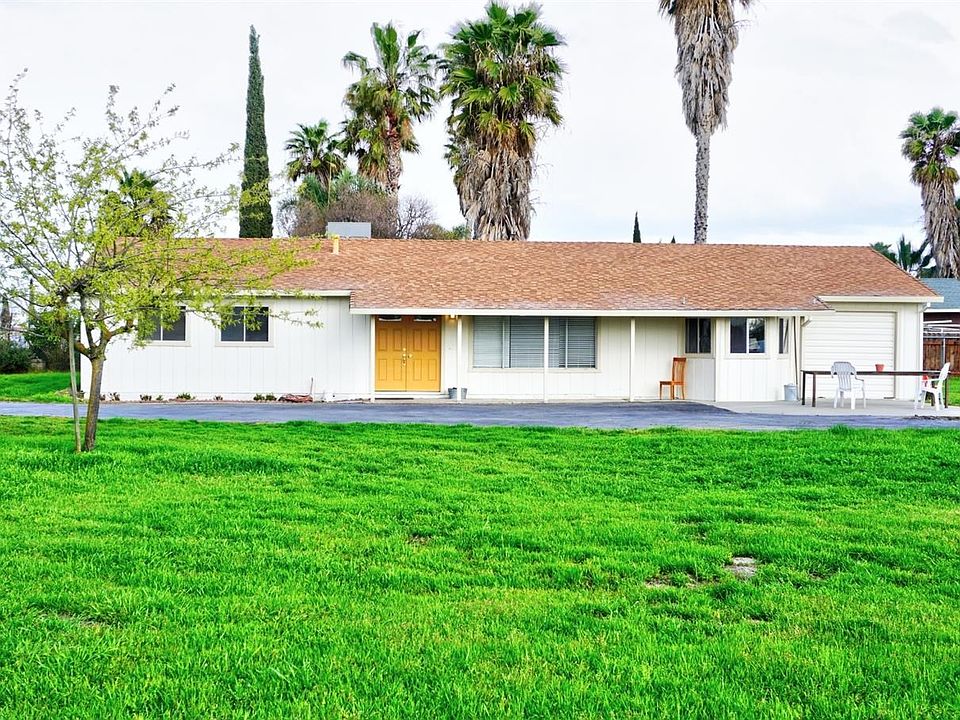 Country life with City amenities! Amazing ranchette located within walking distance to transportation, shpping, and entertainment. This ranchette is situated on 1.16 acres that offers many possibilities. built 1978 and boasts 1852 sq. ft of living space, 3 spacious bedrooms and 2 1/2 updated bathrooms. Open floor plan with living/kitchen/dining combo. Living room has large bay window to view western sunsets. Dining room with pellet stove to keep you warm and cozy during the winter months. 1 car garage or workshop area. Additional features: new exterior siding, new interior & exterior paint, new A/C unit, new double front door, new lights, new back patio cover, new laminate flooring,laminate counters w/gas range, refrigerator (included) and dishwasher. Outbuilding features storage & ride on mower with attachments (included). Possible to build a second SFR of up to 1500 sf. Certain restrictions apply/buyer to confirm with County. Room for horses! Best priced ranchette in Tracy!