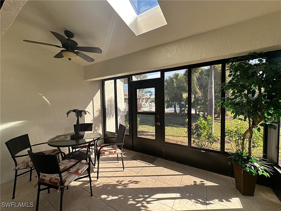 Welcome to your beautifully renovated 2 bedroom/2-bathroom NUTMEG POOL VILLA. This is a corner unit, with west and east facing lanais. Cathedral ceilings, all new impact windows (8) and new renovations done top to bottom, this unit is being sold turnkey to allow you to enjoy nearby Fort Myers Beach (3 miles) and Sanibel/Captiva islands (4 miles) also Bunche Beach quickly. The kitchen has Quartz counter tops, soft-close cabinets, new fixtures, and all new GE appliances. Tile throughout the main areas and new Berber carpets in the bedrooms. This unit has its own utility room with Brand new GE washer and dryer. Front and back lanai have been enclosed with acrylic/screened panels. There is an assigned parking spot and storage unit. New Lennox HVAC.