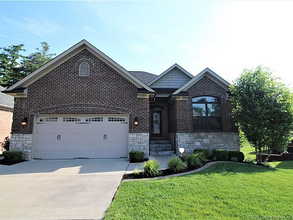 Welcome to Yorktown Park subdivision nestled in the Silver Creek School System in a WELL SOUGHT AFTER NEIGHBORHOOD! Full Partially finished WALK-OUT BASEMENT with TONS OF UPGRADES! Beautiful brick and stone combination upon arriving at the home with a well manicured yard with IRRIGATION SYSTEM and upgraded landscaping. Take a look inside to see a grand entrance with COFFERED CEILINGS, hardwood plank flooring, Gas Burning fireplace with mantle, Large PICTURE WINDOWS overlooking your FULLY FENCED IN yard and COVERED SCREENED IN PORCH, and an open concept leading into the kitchen. Eat-in kitchen with more custom woodwork, GRANITE counter tops, special order back splash, custom lighting and all APPLIANCES TO REMAIN. Don't forget the cubbie/nook for backpacks and shoes just off the kitchen for those after school days! A very large master with custom tiled walk-in glass shower and garden tup await you with dual sink GRANITE TOP vanity! Check out the WALK OUT BASEMENT with a huge entertaining space, concrete stained floors, full bathroom and large bedroom! ALL OF THIS FOR UNDER 320,000 IN SELLERSBURG. 100./. USDA Financing to those who qualify! Call today and make it happen.