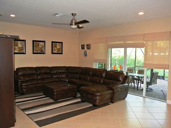 Designer showcase home in pristine condition with an open and airy floor plan ideal for today's busy lifestyle. This home has 5 bedrooms, 4 baths and 2 car garage. The chef's kitchen is a chef's dream with 42'' cabinets with crown molding, granite counter tops, snack bar and family dining area. Master retreat has a sitting area, his and her walk in closets, dual sinks with wood cabinets, garden tub and a walk in shower. The secondary bedrooms are airy and spacious. One bedroom is located on 1st floor, perfect for a play room or office. The loft can be used as a 2nd family room. Screened in patio over looks the large private back yard. This home boasts tile laid on the diagonal, laundry on the 2nd floor, accordion shutters, fans in every bedroom, loft, family room and patio.