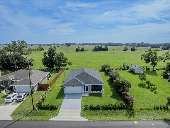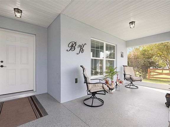 No HOA and newly paved asphalt roads (road assessment taxes PAID in full - no cost to buyer). Screened front porch facing sunsets and covered screened lanai facing sunrises - overlooking pastoral farm views. Open floor plan front to back with cathedral ceilings. Fully functional kitchen with pantry, stainless steel appliances, white shaker-style cabinets and granite countertops with undermount sink in the island/bar facing the living room. Dining room overlooks the screened lanai and nature. Luxury vinyl plank floors in common areas, tile in bathrooms, and carpet in bedrooms – all finishes in neutral tones. Shark floor coating on front porch, lanai and garage. Just a few minutes away from Ocala and downtown Dunnellon with Rainbow Springs State Park and Blue Run Park a short drive away – both of which offer exceptional waterfront recreation opportunities for both residents and visitors such as nature trails, and swimming, kayaking and paddle boarding on the Rainbow River. Nighttime space launches from Cape Canaveral can be seen in the distance from the lanai.