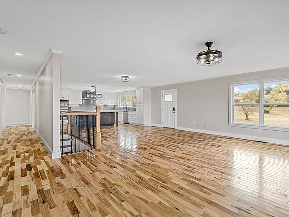 Enjoy the peaceful views all around this beautifully renovated home. Nestled on just under 7 acres, this 3 bed 4 bath gem has been completely renovated. Main floor has open concept kitchen/living area with 3 large beds and 3 baths. Primary and BR #2 have en suite baths, 3rd BR is Jack & Jill. Hardwood floors and tile in baths. 7 ft granite island in kitchen, soft close cabinets, under cabinet lighting. Freestanding tub in primary and custom tile showers throughout. Walk downstairs to a large bonus/flex room w/ kitchenette and full bath. LVP floors downstairs/tile in bath. Perfect for a mother-in-law suite! Closets have been left for possible customization. Large laundry room with utility sink. Front/ back porch decks to enjoy the scenic surrounding.