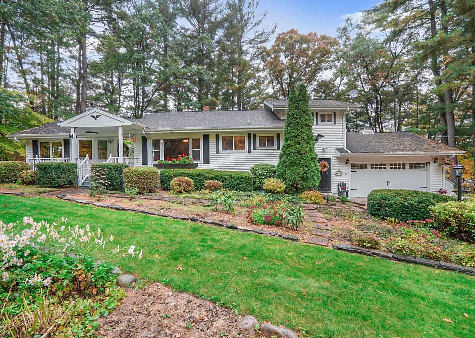 Privacy surrounded by woods with 250ft of water frontage. All the benefits of Greenville and only 35 minutes to Grand Rapids. Approach the home and see the meticulously manicured landscaping and well cared for home. PRIDE IN OWNERSHIP is beaming in this property with updated flooring, paint, and kitchen featuring cherry cabinets and beautiful countertops! Open flow from kitchen to dining room and family room featuring showpiece fireplace. 2 Bedrooms on main level with full bath. Upstairs is master bedroom privacy with walking closet, en-suite master bath and terrific view of Harlow Lake. Two stall attached garage Leads to breezeway/office area and down to music room, 4 bedroom, and laundry.