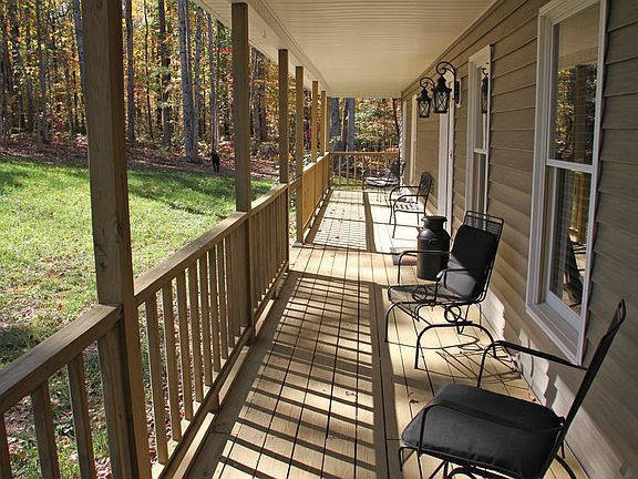It's hard to beat the comfortable cozy this home has to offer! Nestled in surrounding woods, this nicely landscaped home with wrap front porch and side screened porch is superb! The vaulted ceiling provides the light airy living space you're looking for with updated kitchen appliances, brick hearth plumbed for gas logs. The kitchen has stainless steel appliances: double oven, SxS fridge, DW, electric cooktop. French doors with in glass blinds lead to back deck. LR is carpeted, has cozy fire place, open stairs to upper level. Main level MBR has two double closets. Auxiliary BR is large, has two double closets. Hall bath has dual vanity. Upstairs is second MBR with WIC.