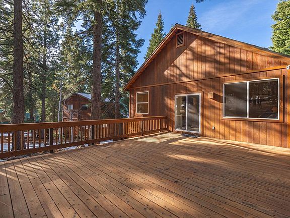 Nestled in one of Tahoe Donner's most sought-after locations, this meticulously maintained 4-bedroom, 3-bathroom home offers the perfect balance of comfort and convenience, just minutes from Tahoe Donner's exceptional 4-season amenities. Designed with large families and entertaining in mind, this home boasts an open floor plan, soaring vaulted ceilings, and a striking rock fireplace in the main living area. The chef's kitchen is a true highlight, featuring granite countertops, a butcher block island, and sleek stainless steel appliances. All four bedrooms are generously sized, including a luxurious master suite complete with a spa-like bathroom and a jetted tub offering serene private views of mature trees. The expansive fourth bedroom, outfitted with built-in bunk beds and its own private bath, is perfect for guests or multi-generational living. Two large decks provide ideal spaces for entertaining or unwinding in nature, while the home’s location backing to open space and hiking trails ensures privacy and outdoor adventure right at your doorstep. Gorgeous natural stone and wood accents throughout add warmth and charm to this exceptional property. Experience the ultimate Tahoe lifestyle in this stunning home—schedule your tour today!
