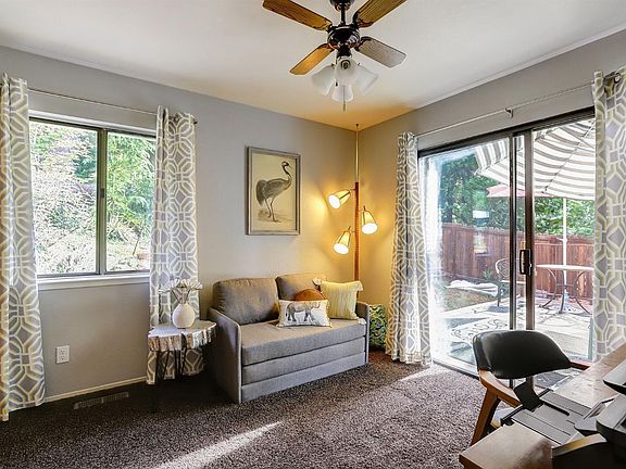 Sweet single level Banner home on large lot. Wrap around driveway leads to ample parking and low maintance front yard. Exceptional floor plan has open wood ceilings in kitchen/family room area, wood floors in living room and family room. Family room has wood burning stove in corner. Kitchen boasts Granite counters, white painted cabinets, beautiful rock back splash and lots of light from sky light. Lovely large living room with Gas fireplace and big windows looking out over forest views. . Backyard has plenty of room for gardens, entertaining and family play. Dip into your above ground pool on those hot days! New hot water heater and electrical panel. This home has been lovingly cared for and you will be impressed!
