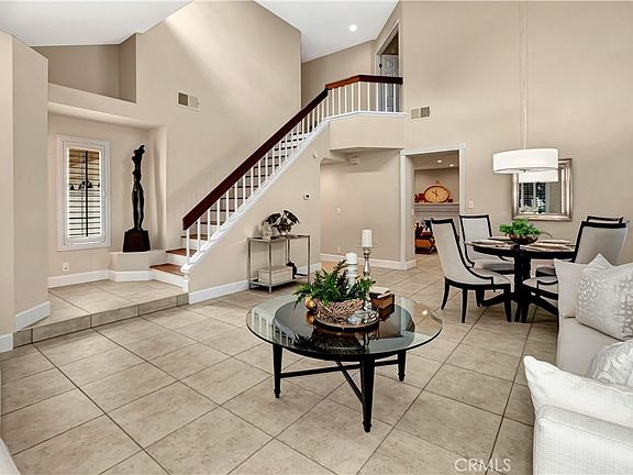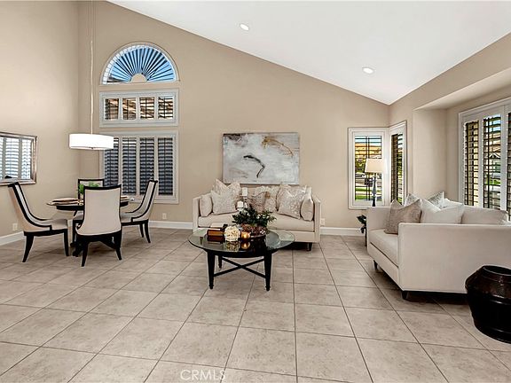 WOW! This is a fabulous 4 bedroom home ONLY 20 minutes from North Irvine over 261, so is very convenient to everything AND offers substantial value!! Take Green River Exit off 91 - so close, and not far at all! Green River is a lovely guard-gated community - a beautiful enclave - on the edge of Orange/Riverside County. Recently remodeled kitchen, freshly painted, new baseboards, refaced cozy fireplace with gas logs in family room - this updated, well-cared-for home LIVES LARGE - living room and dining room with 2-story volume, clerestory ceilings, separate family room, adjacent the nicely remodeled kitchen with pull-out drawers - the master bedroom ceiling is especially high with new recessed lighting. In addition to all that is the large lush landscaped yard with tangerine and peach trees, huge covered flagstone patio, new cover over private spa (which works great!) - truly something for everyone! THIS IS A RARE 4-BEDROOM HOME - they don't become available very often! This home has a 50-year, insulated, concrete tile roof (installed approx. 2018, tore off old roof.) This home has been freshly refurbished, painted throughout, new recessed lighting LR, FR, Kitchen, Master Bedroom, hall, over tubs. New fixtures, new dining room chandelier - custom plantation shutters throughout this residence - they always remain classic features for upscale window covering privacy. New garage shop lighting and epoxy coated garage floor for easy clean-up - feels like it's part of the house – 2018-installed water softener in garage. RESORT-STYLE LIVING: the HOA (LOW $182/MO) offers fun neighborhood events, holiday occasions, racquetball court, lovely pool, huge clubhouse (with kitchen), wonderful staff, kids pool, spa, BBQ area, covered shaded area, dog park, tennis courts, pickle ball, basketball court, playground, shuffleboard, pool tables, ping pong, sauna, gym etc., etc., etc. WELCOME HOME! TREMENDOUS VALUE!!
