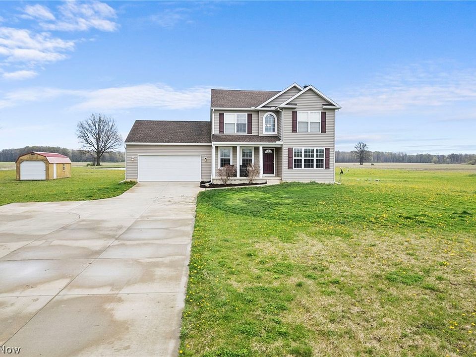 Beautiful three bedroom, four bath Colonial home in Oberlin. As you enter the foyer there is an Office, formal Dinning Room, half bath, Living room with wood burning fireplace, "wood look" luxury vinyl Laminate flooring and eat in Kitchen with breakfast bar. Kitchen comes complete with all stainless Frigidaire appliances, vinyl flooring, pendant lighting, pantry and a slider door leading to the large patio and a view of the pond and five acres of land! Backyard has a large shed with a loft for plenty of storage, a firepit and a pond to enjoy the evenings! Second floor has three bedrooms and two full baths. Laundry room with utility tub, guest bedroom has walk in closet and the large Owner's suite has walk in closet and full bath with walk in shower. Full Basement is unfinished but has a half bath, 2 sump pumps, Geothermal heat/cooling and could be finished to make a nice family room. Come enjoy the county setting and your beautiful home and make it your own!