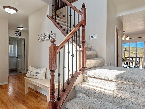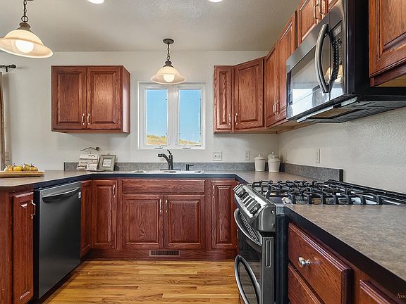 Listed by Jeremy Kahler, KWBH, 605-381-7500. Nestled on nearly 1 acre, this 1.5 story home has been updated inside and out and is ready for new owners! Updates include: New carpet in lower level, new roof, and gutters (2020), recently built back deck, recently stained front deck, extensive back yard landscaping (including French drain installation!), private sauna, recently pumped septic, radon system, and more! *4 bedrooms, 3.5 bathrooms, and a bonus room *Front sitting room/office space with soaring 17' half vaulted ceilings and builtin bookshelves *' U' shaped kitchen with black stainless steel appliances, ample cabinet, and counter space, and a window overlooking the back yard *Pass through the dining room (with slider access to the back deck!) and onto the living room with large windows and a gas fireplace *Main floor laundry room with great storage space *Upstairs has 3 bedrooms- one being the master suite with spacious bedroom, walk-in closet and an ensuite 4-piece bath with jet tub. Basement level has an 'L' shaped family room with new carpet, 1 bedroom with wood paneling and large window, 1 full bathroom, a bonus room with private sauna (could be converted to a 5th bedroom, currently NTC for closet), and a partially finished utility room with storage space *Attached 2-car garage is finished, heated and has built-in and bonus ceiling storage space *Outside has a recently built deck that overlooks the back yard that was fully re-sloped and has a custom stone retaining wall *Tasteful landscaping throughout the property*Covered front patio faces SE and provides great space to watch the sunrise *Black Gap HOA maintains roads, neighborhood playgrounds, community pavilion, and walking trails. Beautiful home on a spacious lot- this is a rare find- call today!