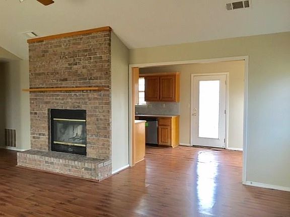 Brick and vinyl siding home sitting on approx. 1 acre, large living room with fireplace, eat in kitchen with electric range and dishwasher, 3 bedrooms, 2 baths, covered front porch and chain link fenced back yard. Survey recommended for accurate acreage