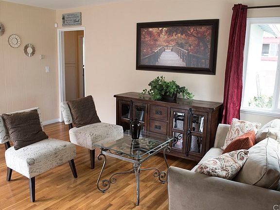 Large expanded home on beautiful tree lined street. Featuring a HUGE grass front yard, formal entry and living room with recently restored hardwood floors. Huge step down family room with a distinctive stacked stoned fireplace and dining area. Bedrooms are located right next to each other each with good size closets! Plus a Beautiful Remodeled Contemporary bathroom. Open layout kitchen with Corian countertops and stainless steel appliances. French doors open up to a large covered patio with TV hookups for extended entertainment. Backyard has gorgeous landscaping with ample space. Dual paned windows, and six month old roof done with permit. There is also a two car driveway with garage and laundry hookups inside! In addition, imagine how much you'd save with a state of the art NEST Thermostat to control your home's heat and central air-conditioning from anywhere!! Come take a lot for yourself. This home will go fast!