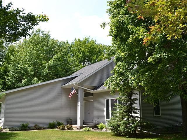 Per Seller....Maintenance free 2/3 bedroom vinyl sided 2 story year around home with 3 full baths. 1st floor has formal L/R with 2 way fireplace to kitchen/dinette. Lake view from nice size kitchen with plenty of cabinets, stove refrigerator, dishwasher and micro-wave. Also, full bath and laundry room plus bedroom/den. Second floor MBR has large walk-in closet, full bath and Jacuzzi whirlpool tub. 2BR has full bath and double closets. Each BR has sliding glass doors leading to private balconies overlooking lake. Total of 1812 sq. ft. of living area plus lower level finished office, work shop and stubbed for additional bath. 1acre wooded lot with 135 ft. of lake frontage on Little Rice Lake. Includes roll-a-.Dock pier. In addition to a 2 car attached garage, there is a 2 1/2 car detached garage for boat, snowmobiles or other storage. Private road fees average about $120 annually for snow removal and maintenance.