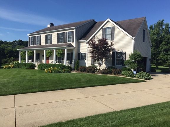 This beautiful colonial home located in a cul-de-sac features a gorgeous private backyard in a sidewalk community. The curb appeal is enhanced by the beautiful landscaping, welcoming front porch and private, tranquil backyard. Located in desirable Penn School District. Updated kitchen with stainless steel appliances, granite countertops, and a first-floor laundry. The kitchen opens to a spacious great room with marble gas fireplace. Features 9 foot ceilings throughout the first floor. 5 bedrooms with several walk-in closets and large storage space. Finished basement with an additional room that can be used as a fitness room, playroom or office. Surround sound and irrigation system. New water heater, gas furnace, air conditioner and flooring.