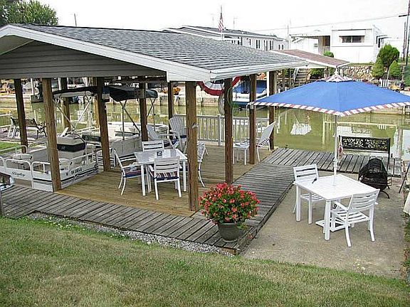 Enter this great week end retreat located on a channel with a double covered boat dock and lift. This home has it all. Covered patio deck, a totally enclosed lakeroom, plus 3 bedrooms. The dock was built 2005. The addition to home and a new over roof was added in approximately 2003. The 2 car detached garage is heated, has a work shop, plus a bonus room for extra space. The garage attic is floored .Newly remodeled bath. Separate utility room with washer and dryer.The lakeroom has gas insert fireplace. Picnic area on deck right at water's edge. The complete package is ready for the summer fun.