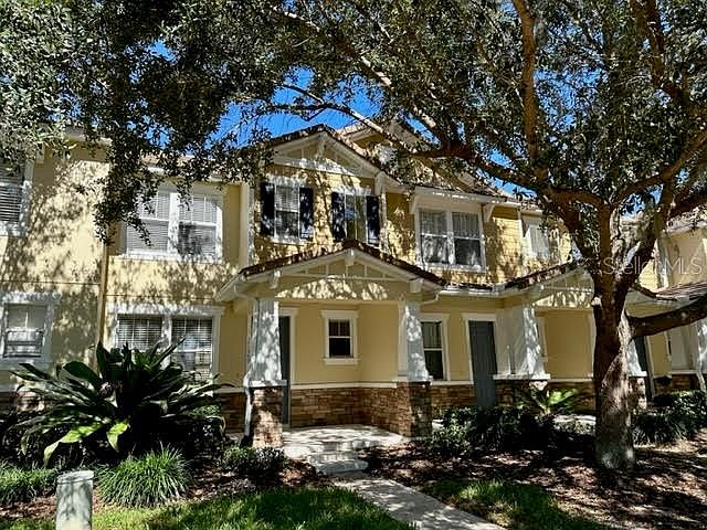 This 2 bedroom 2.5 Bathroom town home is located in the central, popular Windermere community of Lake Burden. Situated between the community pond and the neighborhood park with playground, volleyball, basketball courts and tennis courts and in walking distance to the elementary school. The home has tiles throughout the first floor with kitchen located at the rear of the property overlooking the enclosed fenced yard between the property and the 2 car detached garage. Upstairs is the laundry room complete with washer and dryer, the master bedroom with ensuite shower and secondary bathroom for second bedroom completes the accommodation. Property has had full re touch painting and tiles and carpets professionally cleaned. Best value town home in Windermere.