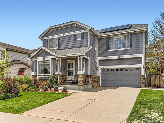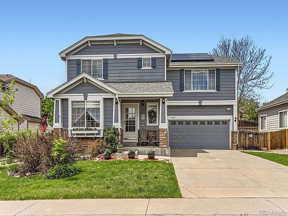 Immaculate Home with a New Roof, Solar, Hot tub & Designer Touches! – 11569 Grape St, Thornton, CO. Welcome to this beautifully upgraded 3-bedroom, 4-bathroom home with finished basement in the desirable Notts Landing subdivision of Thornton. With 2,897 square feet of well-designed living space, this home offers a perfect blend of modern comfort, timeless style, and energy efficiency. The inviting main floor features rich hardwood floors, a spacious open layout, and a gourmet kitchen equipped with granite countertops, a granite composite sink, and sleek stainless steel appliances — ideal for both cooking and entertaining. Upstairs, enjoy the comfort of newer carpet, generous bedroom space, and convenience of having your washer and dryer near the bedrooms. Step outside into your good-sized backyard with a covered patio, complete with a private hot tub and a storage shed for added convenience. Full automated sprinkler system for front and backyard. The 2-car garage and owned solar panels round out the home’s practical and eco-friendly features. The home is also outfitted with permanent, programmable Gemstone designer lighting so you'll never have to hang holiday lights again! Enjoy the benefits of the peaceful Notts Landing neighborhood, which has two parks within walking distance, including one with a picturesque pond stocked with fish — perfect for evening walks or weekend relaxation. This home is the total package — style, space, location, and smart energy features — ready for you to move in and enjoy. Schedule your private showing today!