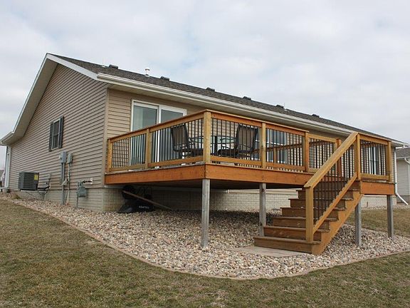 Check out this custom ranch home located in Country View Estates, Sioux Center. Loaded with great features, tasteful amenities, a very well cared for 5 bedroom, 3 bath, with a floor plan of 1420 square feet! Main floor has 3 bedrooms, 2 baths, which includes the spacious master suite! A finished basement and many extra's here! Attached garage is insulated, heated and offers great storage features. The new deck overlooks an open field with a great feel of space and privacy!